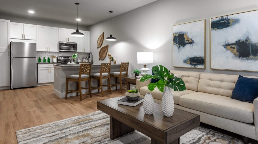 Completed in December 2023 and fully leased within seven months, The Sullivan features spacious one- and two-bedroom units with premium finishes across four three-story buildings. The property’s modern farmhouse aesthetic combines brick masonry, cast stone, and contemporary design elements to create a welcoming residential environment.